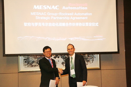 On February 22, MESNAC signed the strategic agreement with Rockwell Automation in Beijing. Mr. Yu Mingjin, Vice President of MESNAC, and Mr. Bob Buttermore, Managing Director of Rockwell Automation Greater China, signed the agreement on behalf of each party.